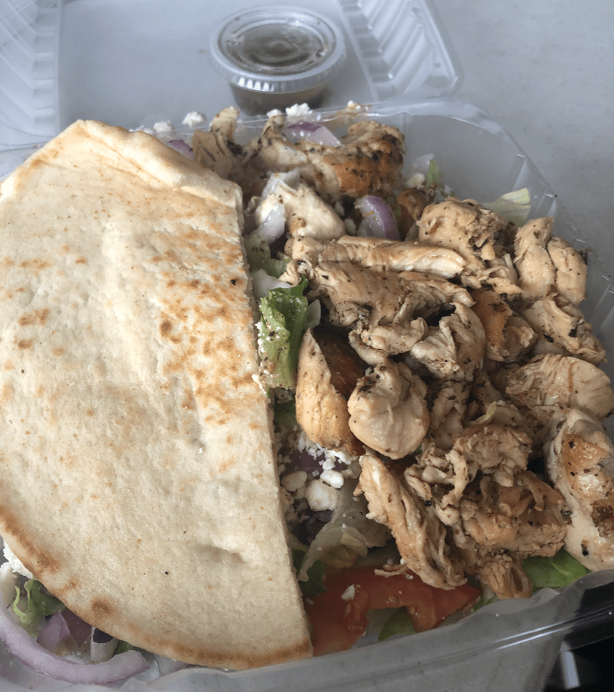 What I would change about this meal: One thing, less tomatoes in the open souvlaki salad.