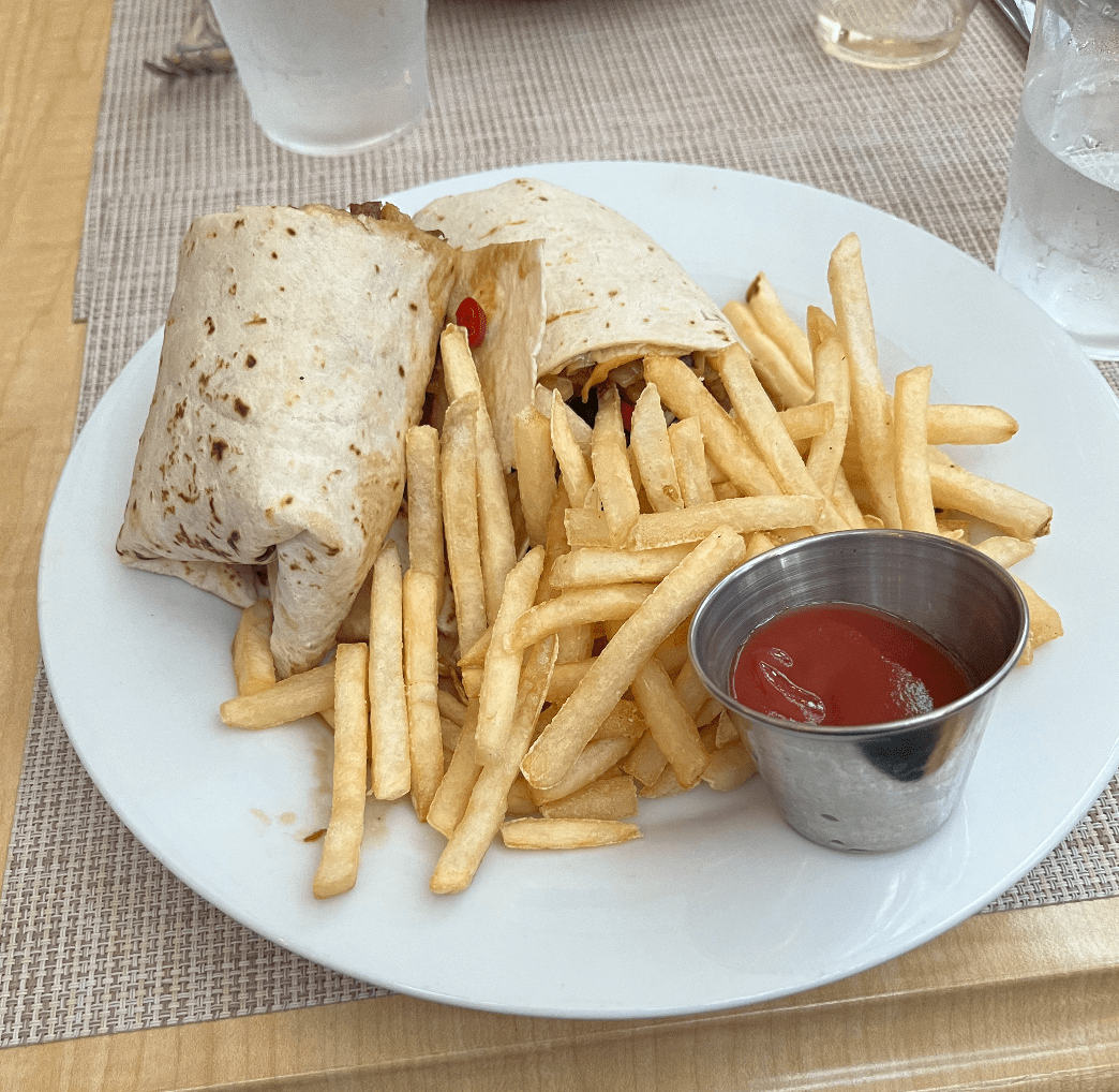 What I would change about this meal: The brussel sprouts need salt and more sauce. The burrito with Filipino seasoning is overpowering – I say bring down the heat a little bit.