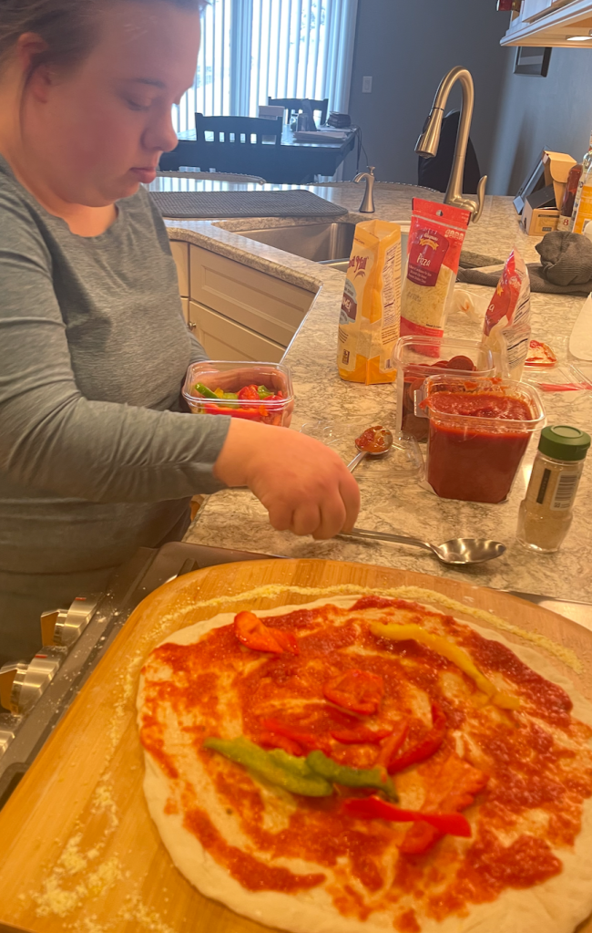 What I would change for next time: Needs more earthy seasoning like basil, rosemary, or thyme. Next time I would try a different kind of crust, like mixing in cheese or rosemary to the dough. This year, I’m really interested in trying something different like new, healthy sauces and everything, too.