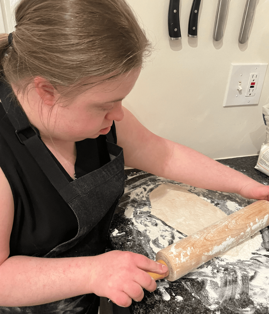 - Flour a clean surface and roll out the dough. You might need a lot of flour to keep it from sticking to the rolling pin.