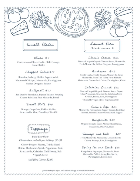 “Special note about this restaurant: all the food is made in a 900 degree, wood burning oven!”