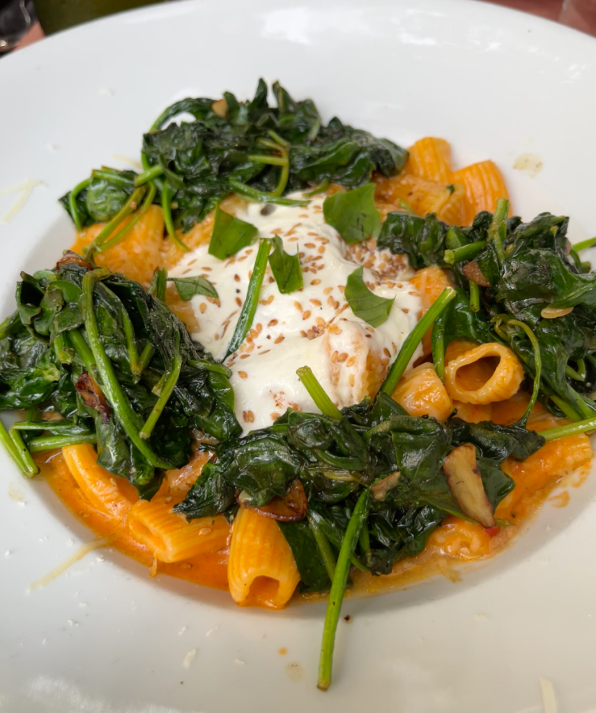 What I liked about this meal: The brussels sprouts have an amazing sauce that has acidity and is well-balanced. The vodka sauce on my rigatoni had a perfect balance with spicy pepper that gives it a tad of a punch. I added the spinach on top to be a little healthier.